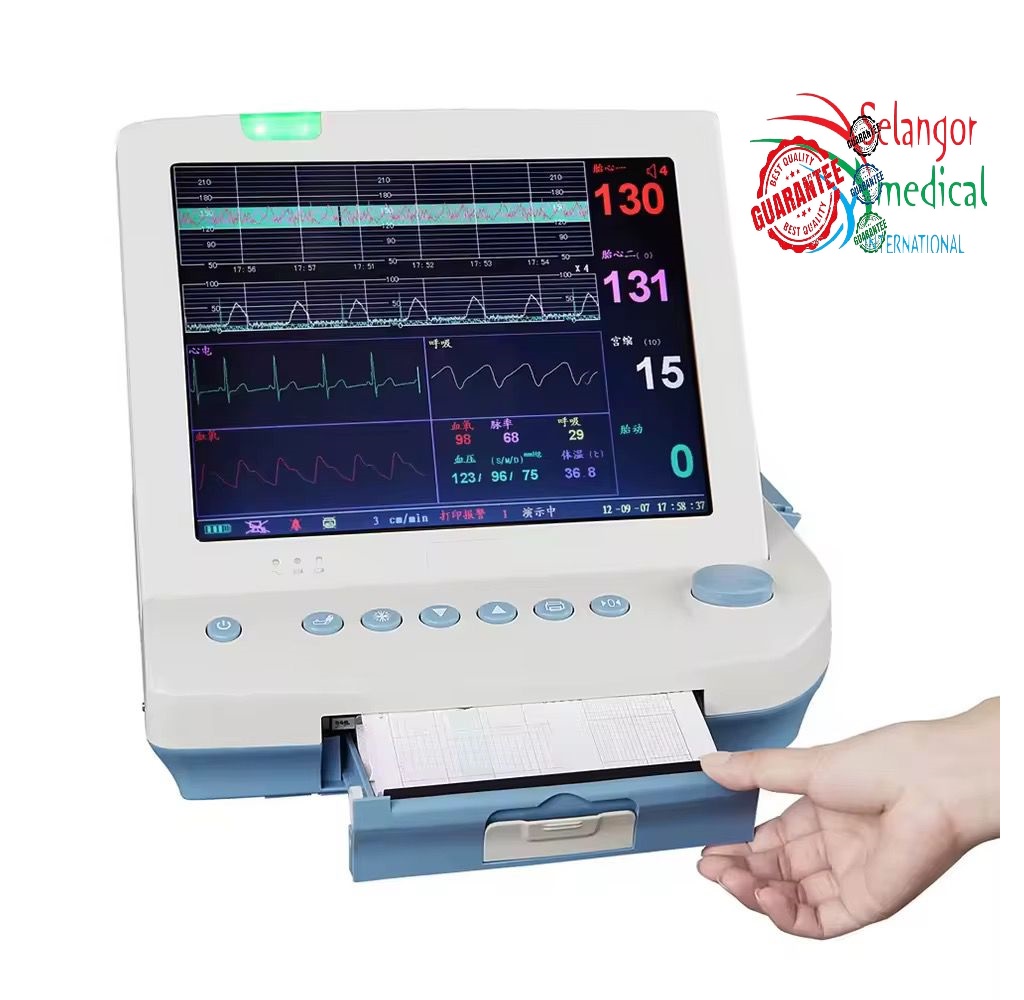 L’écran du moniteur fœto-maternel est un écran TFT de 12,1 pouces, qui peut afficher des informations sur les femmes enceintes, la forme d’onde et les valeurs des paramètres, l’état de la surveillance, les informations d’alarme et d’autres conseils.