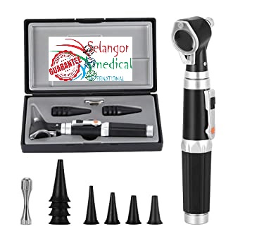 L’otoscope est compatible avec les spéculums auriculaires standards de 2,5 ou 4 mm. Il est livré dans un coffret rigide avec 14 spéculums (7 x 4 mm et 7 x 2.5 mm).