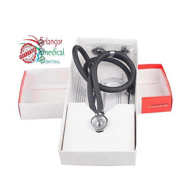 Stéthoscope en alliage de zinc 5 en 1, livré complet avec jeu d’accessoires et membranes de rechange. Convient pour les examens adultes, pédiatriques et néonataux.